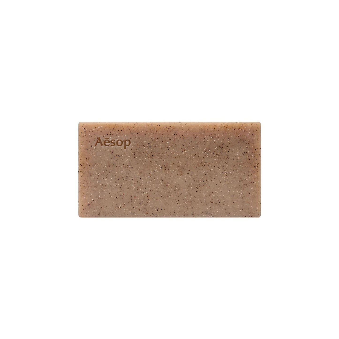 En eksfolierende såpebar fylt med pimpstein og druekjerneolje for å polere og rense de fleste hudtyper—spesielt tørr og flassende hud. For bruk under bading eller ved vasken.