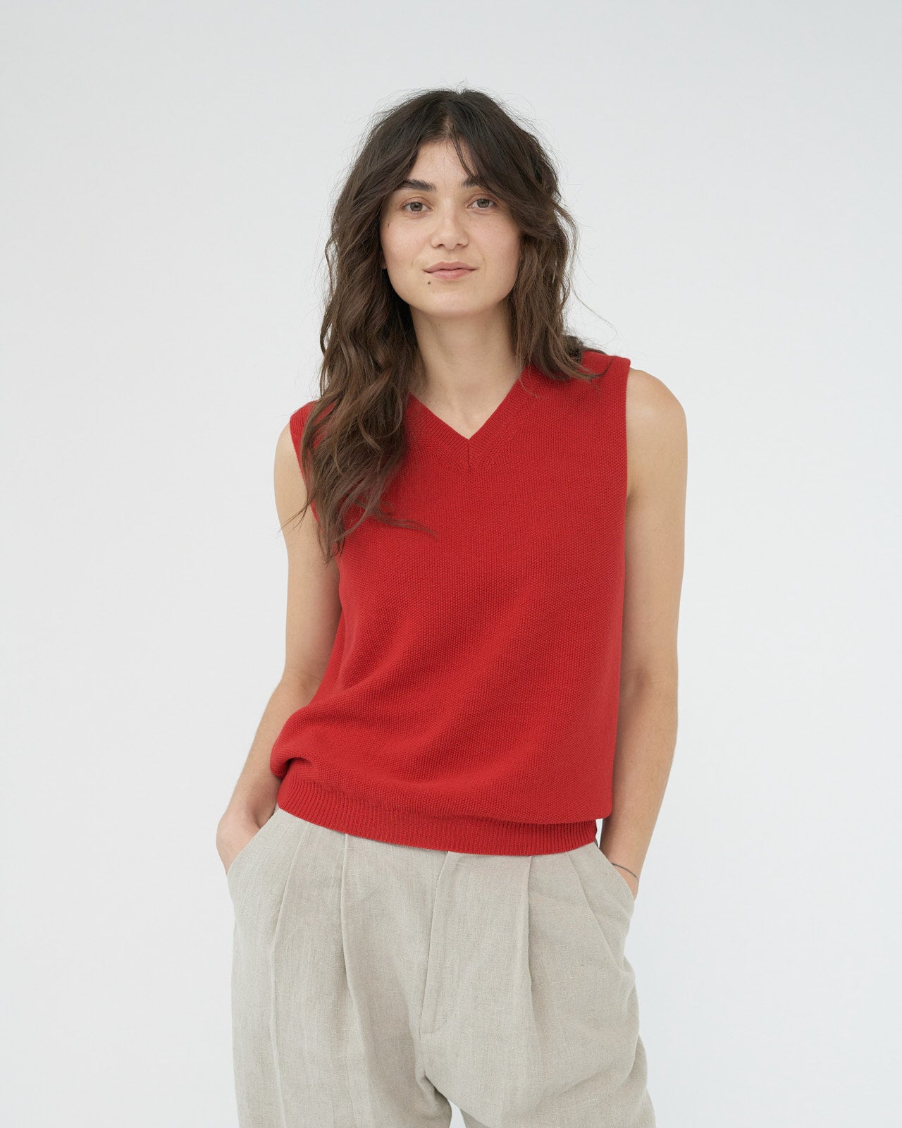 Merino Knit Vest - Red