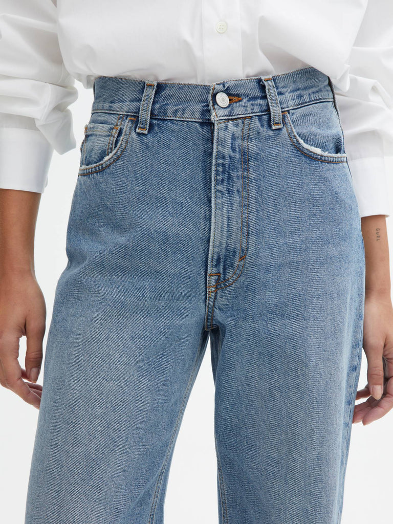 Jeans fra Dagmar som er høy på livet og med en figursydd midje. Jeansen har en lett utsving og rette ben, som gir en avslappet look. Jeansene fra Dagmar er laget av økologisk bomull i høy kvalitet.