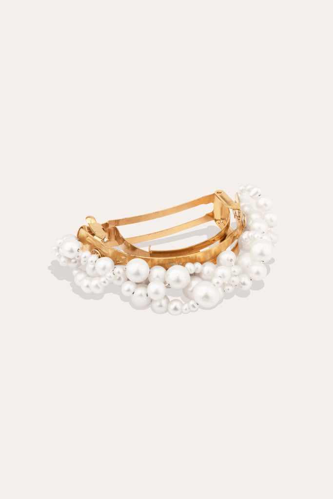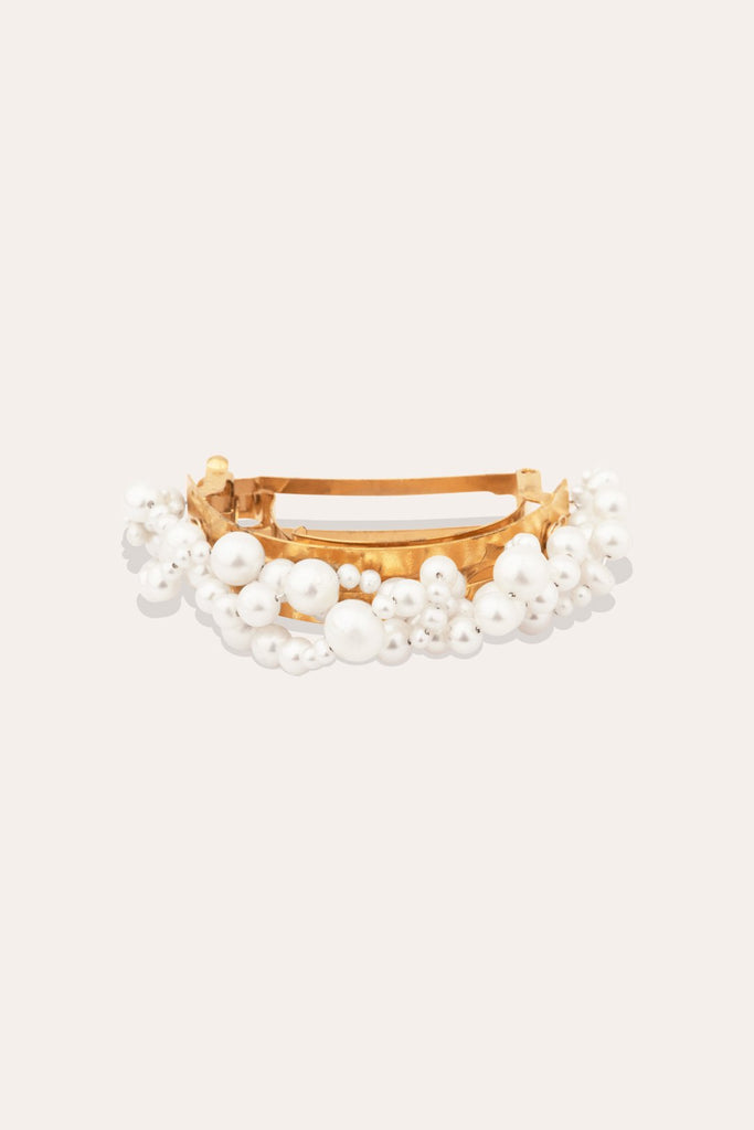 Elegant hårspenne med klynger av ferskvannsperler. Selve spennen av er gullbelagt av 14 karat gult gull.