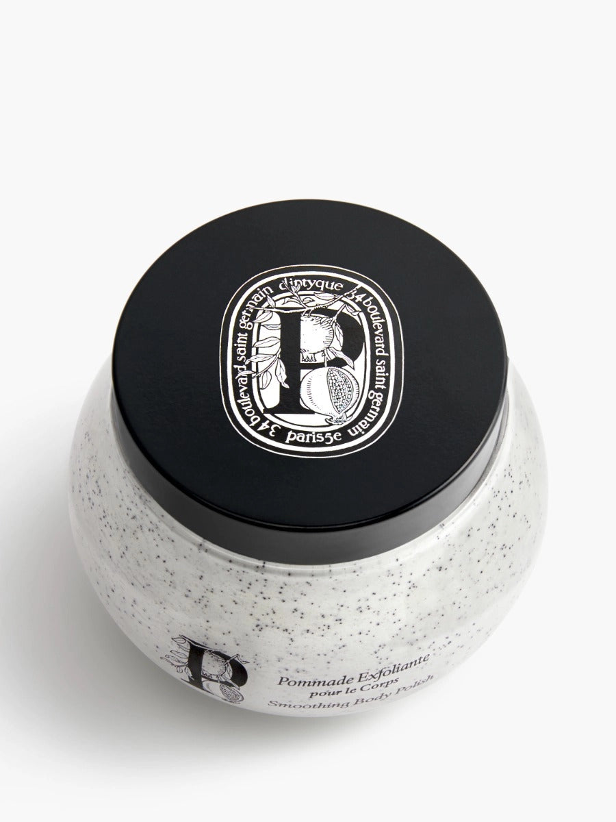 Smoothing Body Polish er en kroppskrubb fra Diptyque som gir huden en oppfriskende behandling. Den eksfolierer skånsomt og fjerner døde hudceller, samtidig som den med granateplefrøolje tilfører rikelig med fukt og elastisitet. Resultatet er en myk, glatt og smidig hud med en silkemyk følelse.