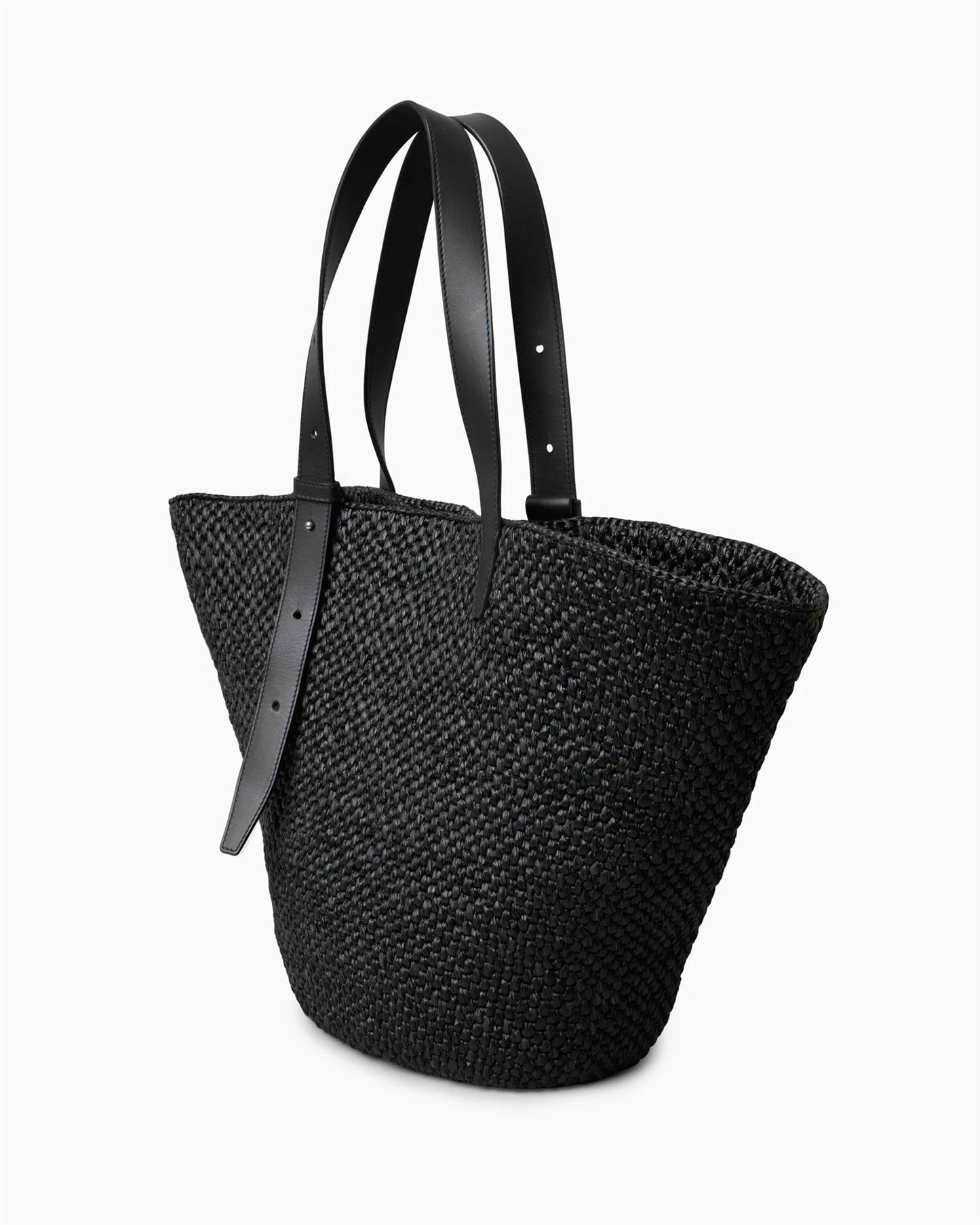 Romslig, men elegant – The Bianca Bag Large er designet for den som bærer sommeren med seg, uansett hvor de går. Perfekt til alt fra markedsskatter og strandfavoritter til hverdagens nødvendigheter. Den svarte strukturen er håndvevd i raffia på Madagaskar ved bruk av tradisjonelle teknikker, noe som gir hver veske et unikt, håndlaget preg.