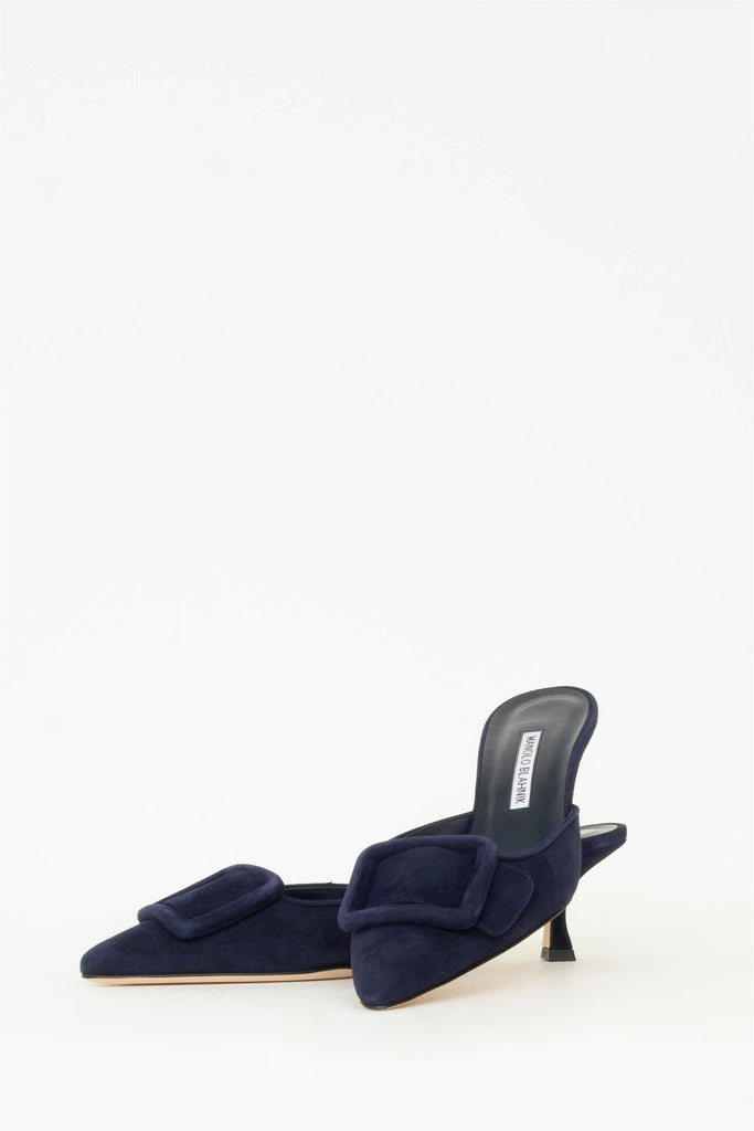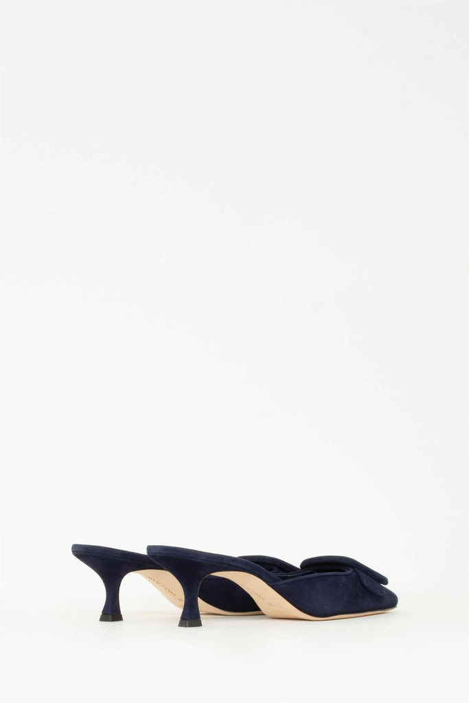 Maysale ble introdusert i 1991 og har raskt blitt én av de mest gjenkjennbare skoene fra Manolo Blahnik. Maysale er en enkel og sofistikert mule og er utsmykket med en spenne i semsket skinn. Dette blir raskt en favoritt i sommerhalvåret til jeans, skjørt og kjoler.