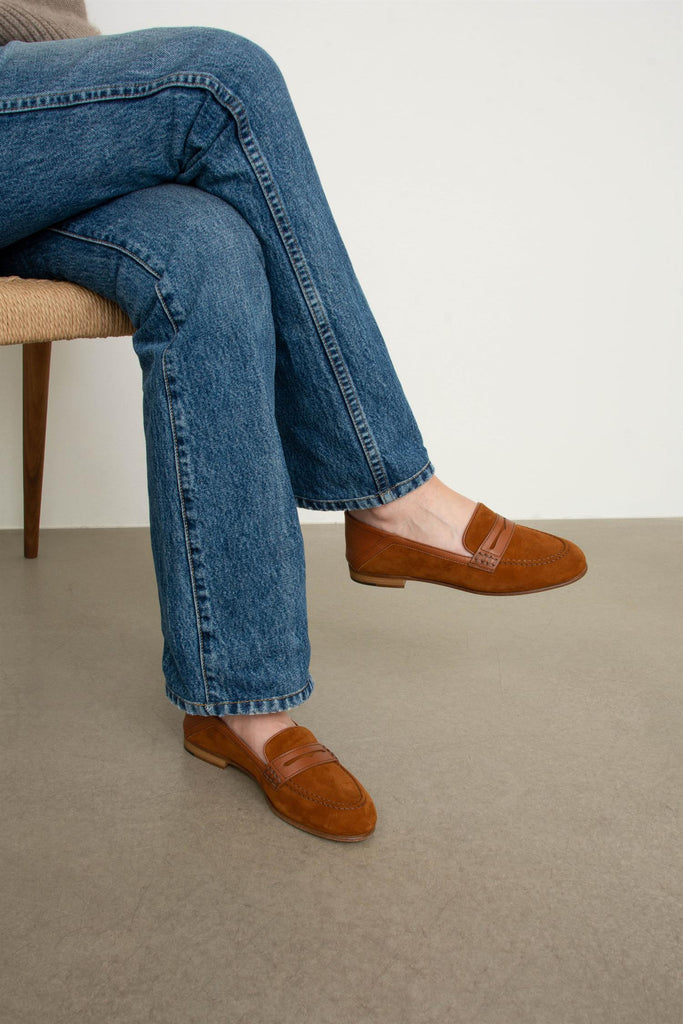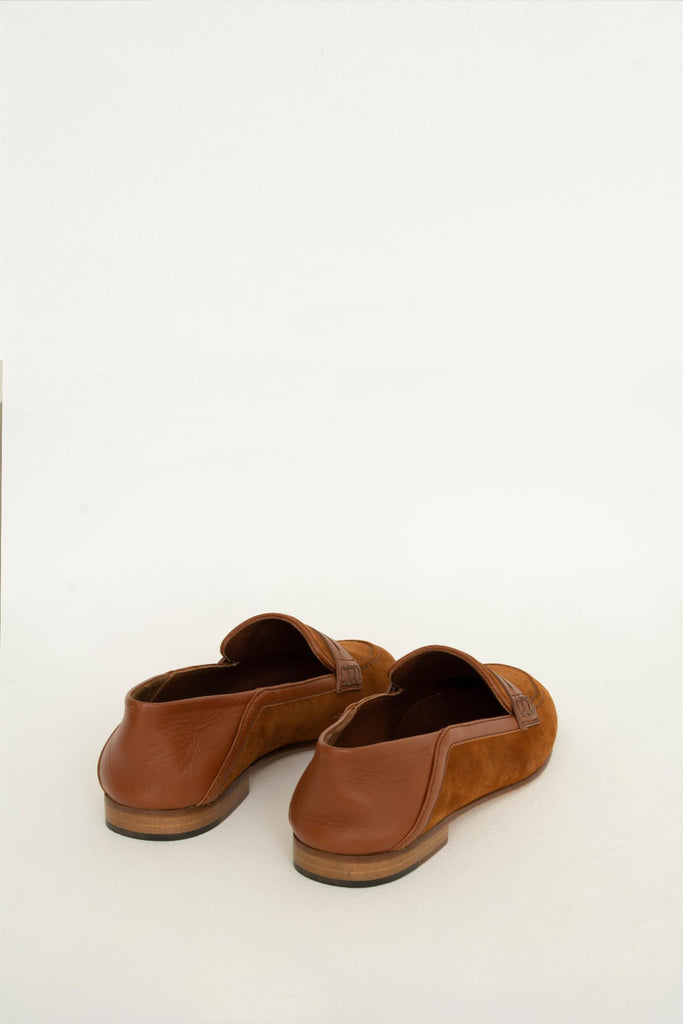 Praktisk bakparti i nappa skinn gir muligheten for å tråkke ned hæl-kanten, og forvandler de tradisjonelle loafersene til slip-on mules.