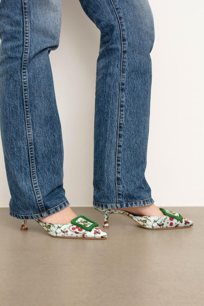 Her i en ny versjon i vår og sommerkolleksjonens blomster-mønster.