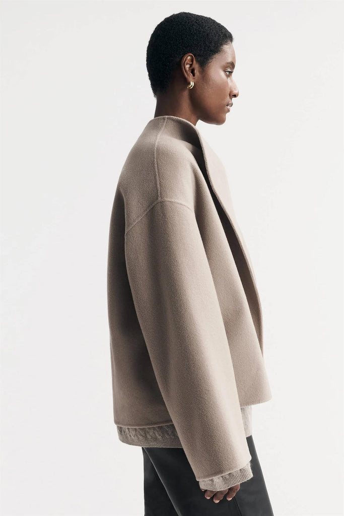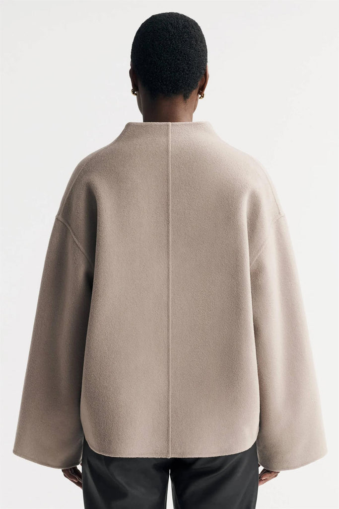 Short Jacket fra Soft Goat har en klassisk, rett fasong med vide ermer og lav krave. Den er laget i en myk blanding av ull og kasjmir og er åpen slik at den er lett å slenge over favorittantrekket. Short Jacket er det perfekte plagget til overgangssesongene.