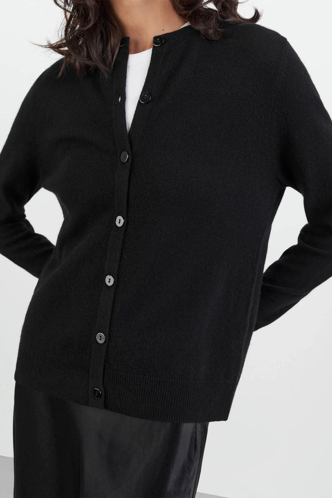Enkel og klassisk cardigan fra Soft Goat. Den har en smal fasong og normal passform. Styles enkelt i hverdagen til jeans, bukser og skjørt.