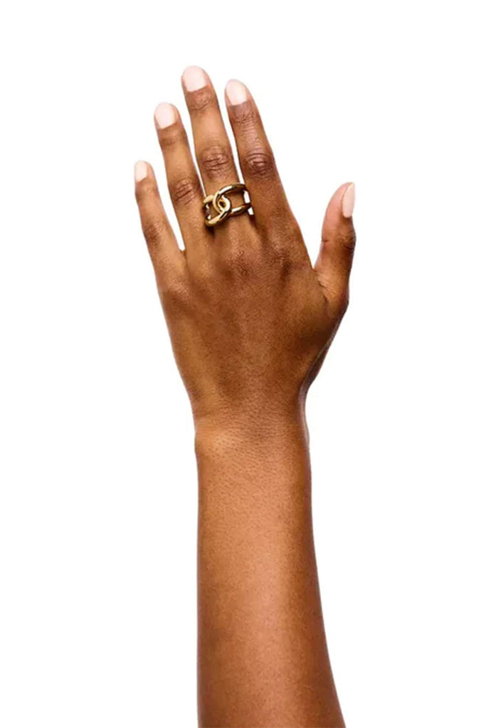 Agnes Ring er en statement-ring med knutedetalj. Bruk den med andre smykker eller alene.