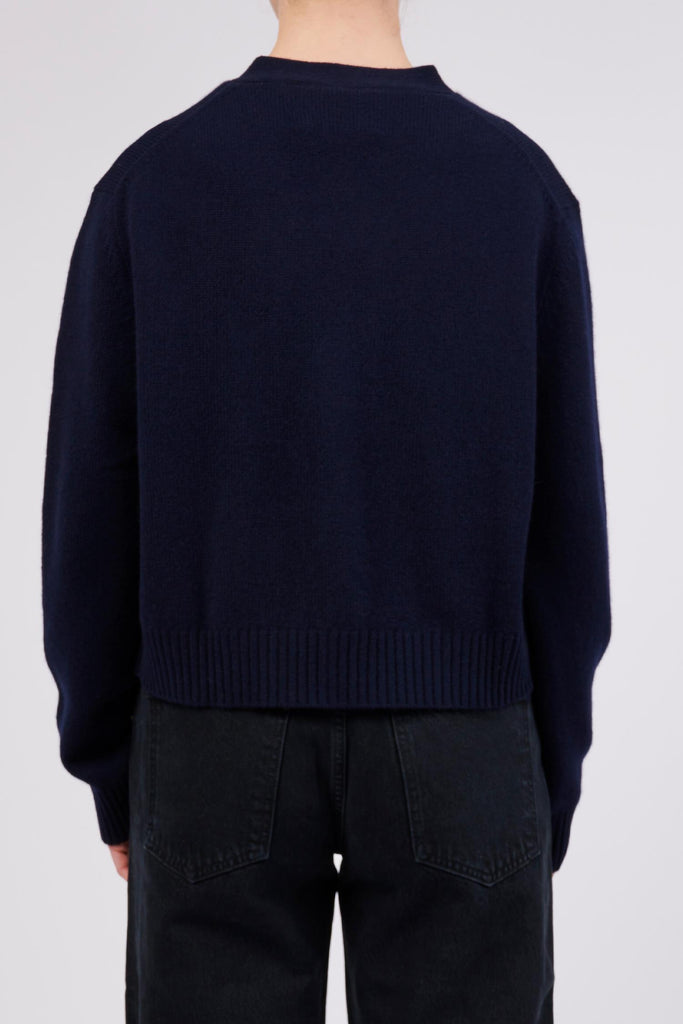 Elegant cardigan fra Lisa Yang i 100% kashmir, som lukkes med knapper. Cardiganen er i fargen navy. Den klassiske cardiganen kan kles opp og ned etter anledningen – og brukes til alt fra jeans til kjoler.