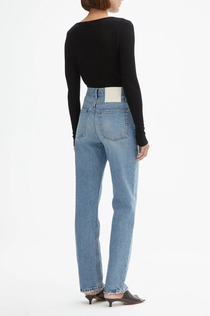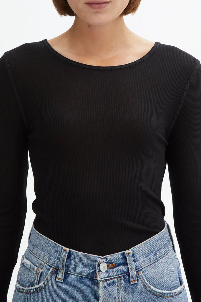 Toppen har lange armer, en smal passform og rund hals og er i en lett og myk ribbet lyocell.