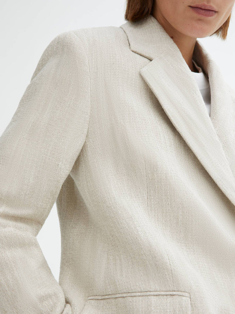 Klassisk blazer fra Dagmar i lin og bomull. Kle blazeren opp og ned etter anledningen og style den til alt fra løse jeans til den matchende dressbuksen. Denne tidløse jakken er en klassiker som kan brukes år etter år.