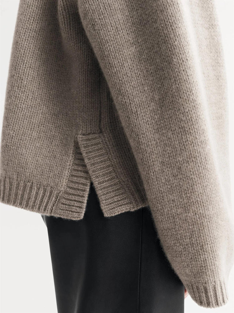 Chunky genser med rund hals fra Soft Goat. Den har en boxy fasong, lave skuldre og vide ermer. Styles enkelt i hverdagen til jeans, bukser og skjørt.