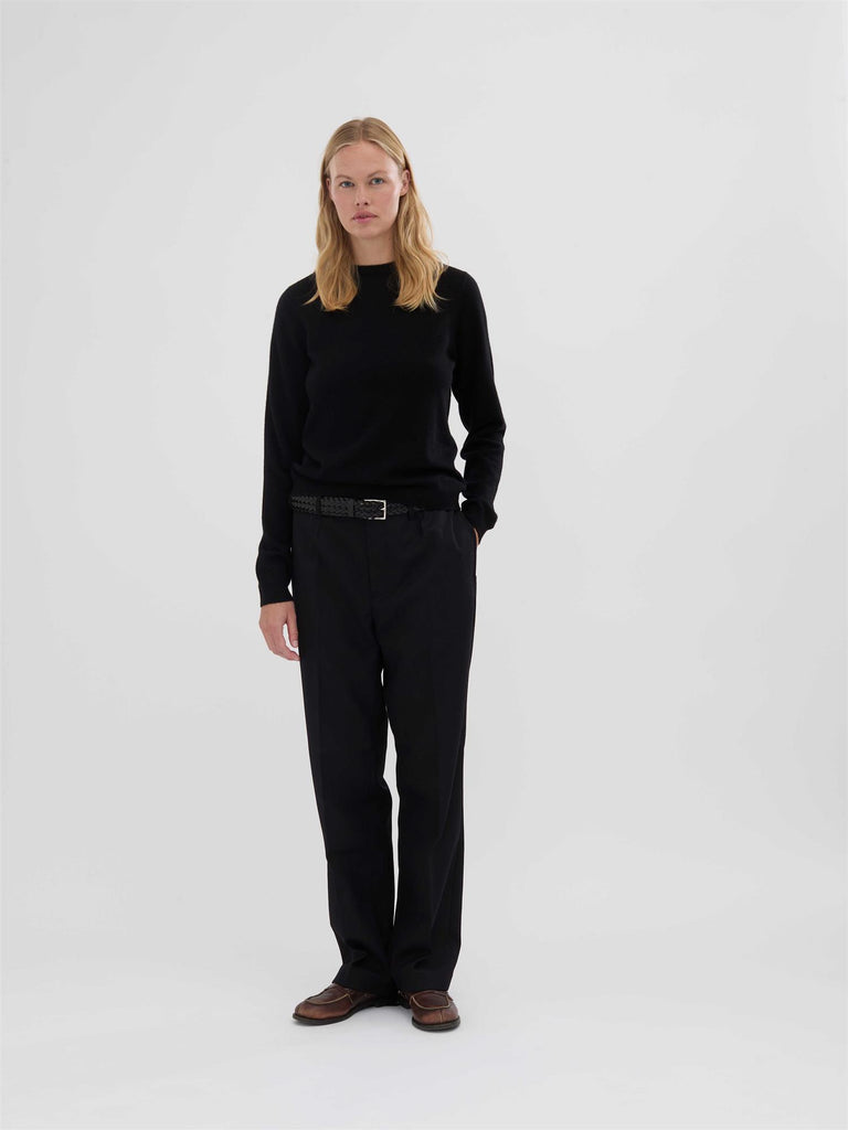 Women's Fitted Roundneck i fargen Black er strikket i 12-gauge, 100 % Grade A kashmir fra Indre Mongolia – kjent for sin eksepsjonelle mykhet og kvalitet. Med en tett halsringning og en smal, kroppsnær passform, forener den tidløs komfort med diskret luksus. Perfekt alene eller som et lag-på-lag-plagg, og tilgjengelig i et utvalg vakre farger. Nøye utformet for å motstå nupper og bevare fasongen – en verdifull investering i en stilren garderobe.
