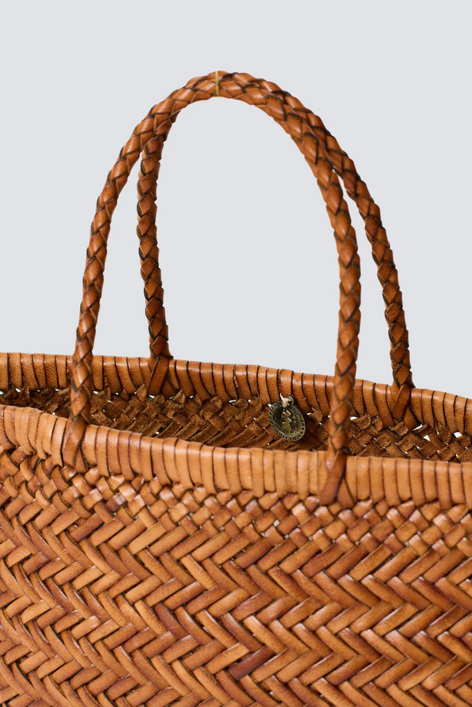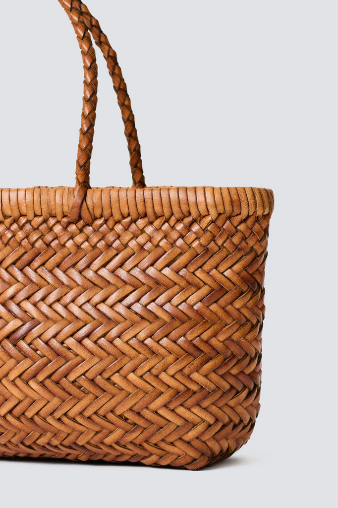Mini Flat Gora fra Dragon Diffusion er en elegant og kompakt håndlaget veske med et tidløst uttrykk. Vesken er flettet for hånd i naturlig kalveskinn fra bøffel, noe som gir den et unikt preg og myk tekstur. Den flate silhuetten og minimalistiske designet gjør den ideell som et diskret, men stilsikkert tilbehør til både hverdags og mer avslappede anledninger.