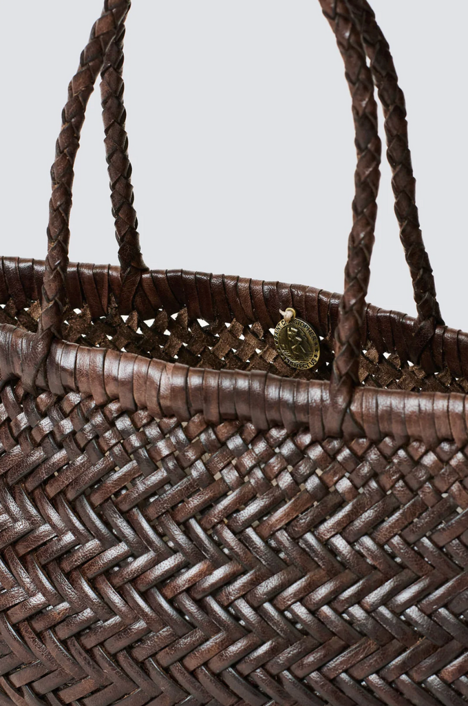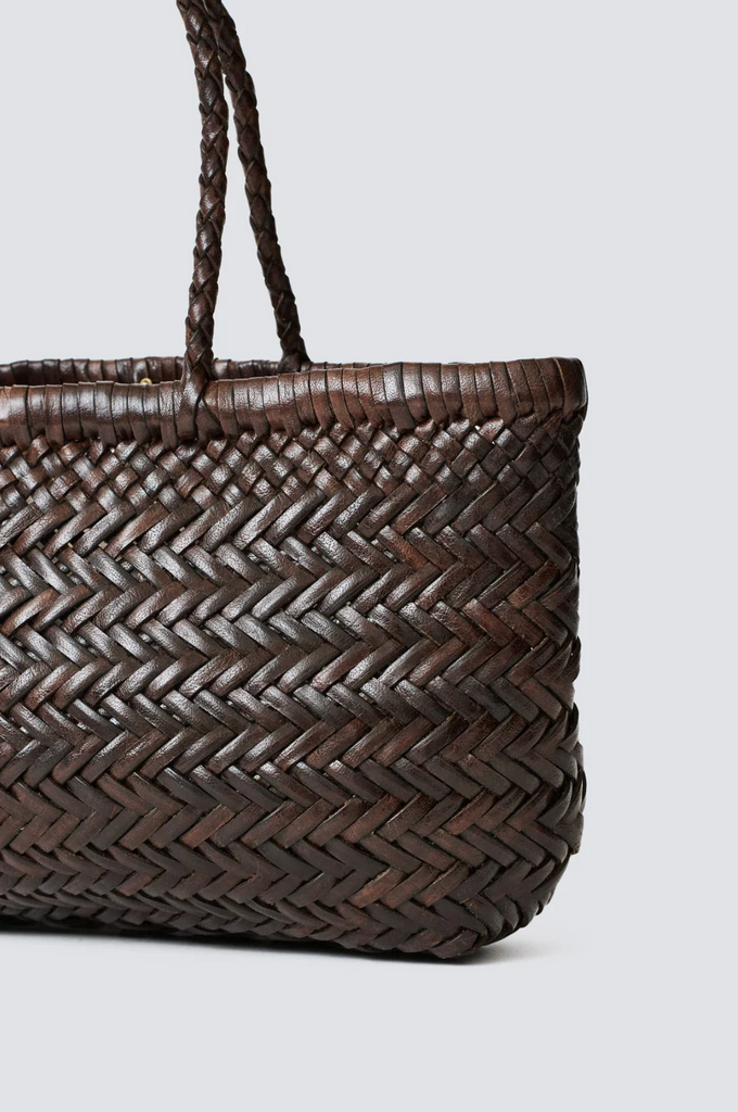 Mini Flat Gora fra Dragon Diffusion er en elegant og kompakt håndlaget veske med et tidløst uttrykk. Vesken er flettet for hånd i naturlig kalveskinn fra bøffel, noe som gir den et unikt preg og myk tekstur. Den flate silhuetten og minimalistiske designet gjør den ideell som et diskret, men stilsikkert tilbehør til både hverdags og mer avslappede anledninger.