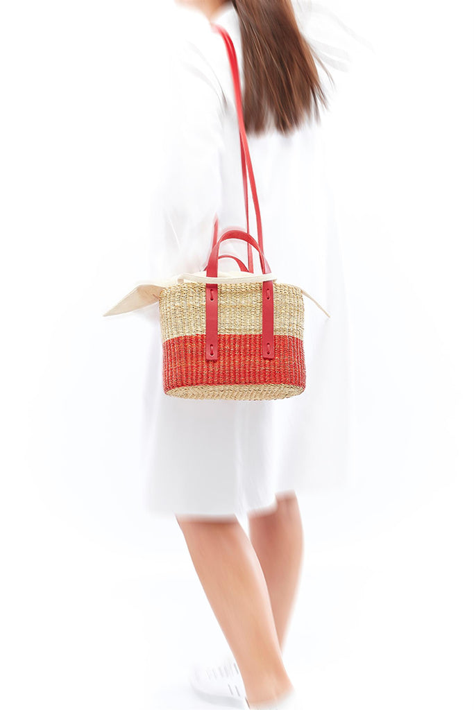 Stråveske med tilhørende bomullspose