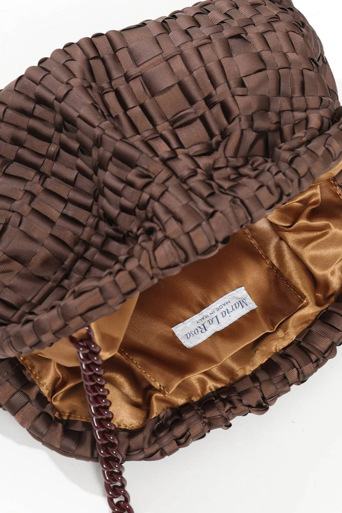 Clutch-veske designet og laget i Italia. Maria La Rosa er opptatt av håndverk av høy kvalitet, og dermed er denne vesken en god blanding av gamle teknikker med en moderne vri. Vesken har også en lenke som kan brukes over skulderen eller som crossover. Game er merkets ikon-veske og lages i begrenset antall. Vesken gir den lille prikken over i-en til et hvert antrekk, om det er på fest eller til hverdags.