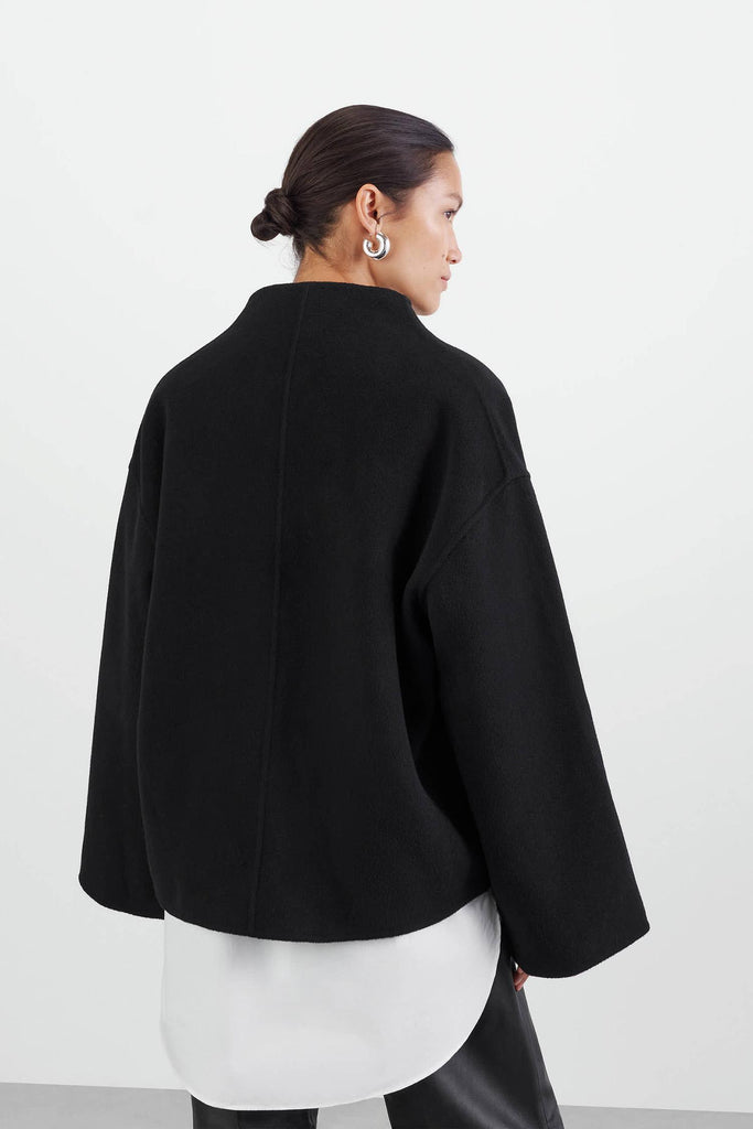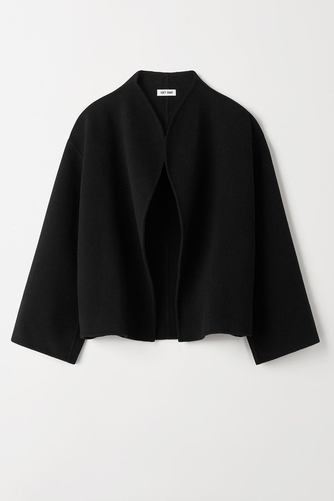 Short Jacket fra Soft Goat har en klassisk, rett fasong med vide ermer og lav krave. Den er laget i en myk blanding av ull og kasjmir og er åpen slik at den er lett å slenge over favorittantrekket. Short Jacket er det perfekte plagget til overgangssesongene.