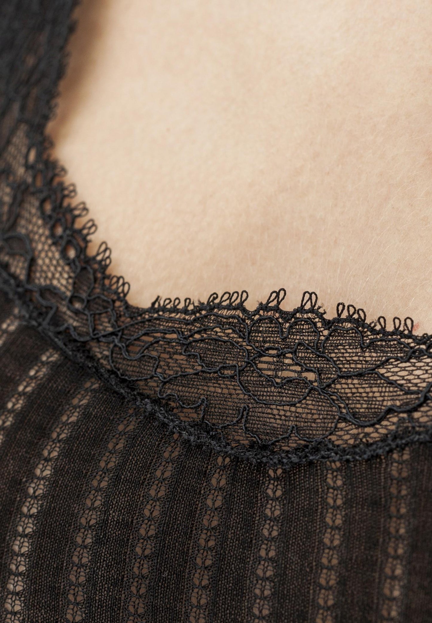 Teknikken bak "Ajouré-Rib" skjuler små kunstverk. Filigran-mønster flettes sammen av bomull og er toppet med delikate håndlagde Calais-blonder. Disse singletene kan like gjerne brukes som topper som undertøy.