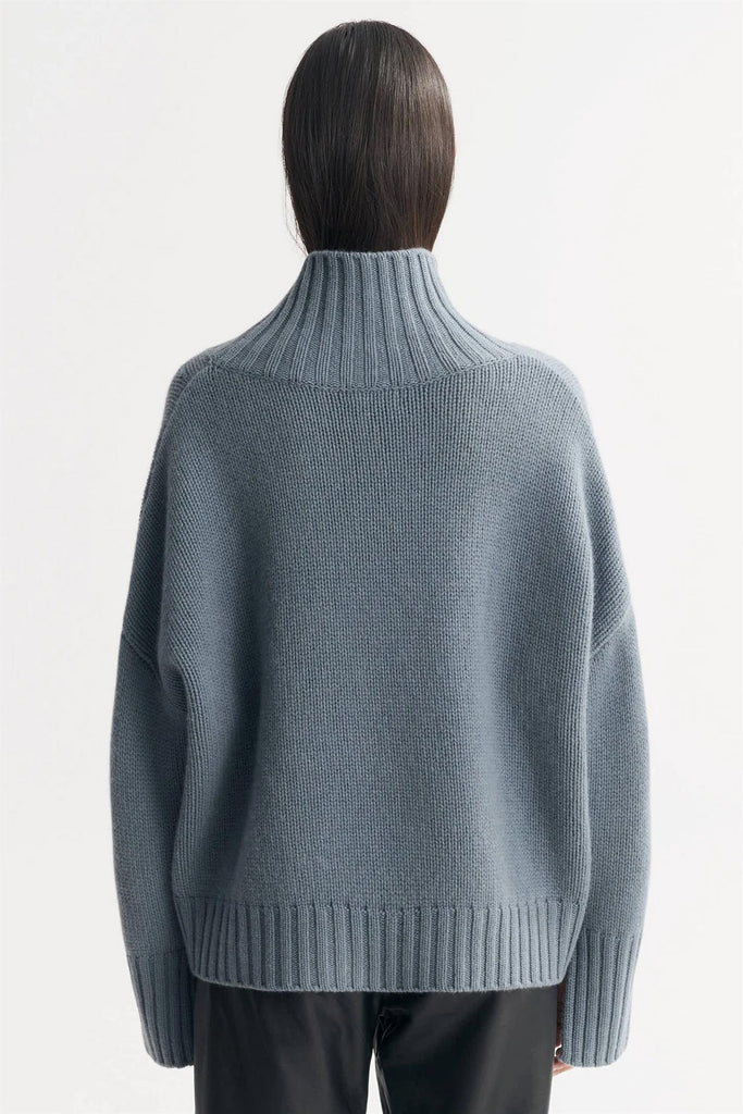 Chunky genser med høy hals fra Soft Goat. Den har en boxy fasong, lave skuldre og vide ermer. Styles enkelt i hverdagen til jeans, bukser og skjørt.