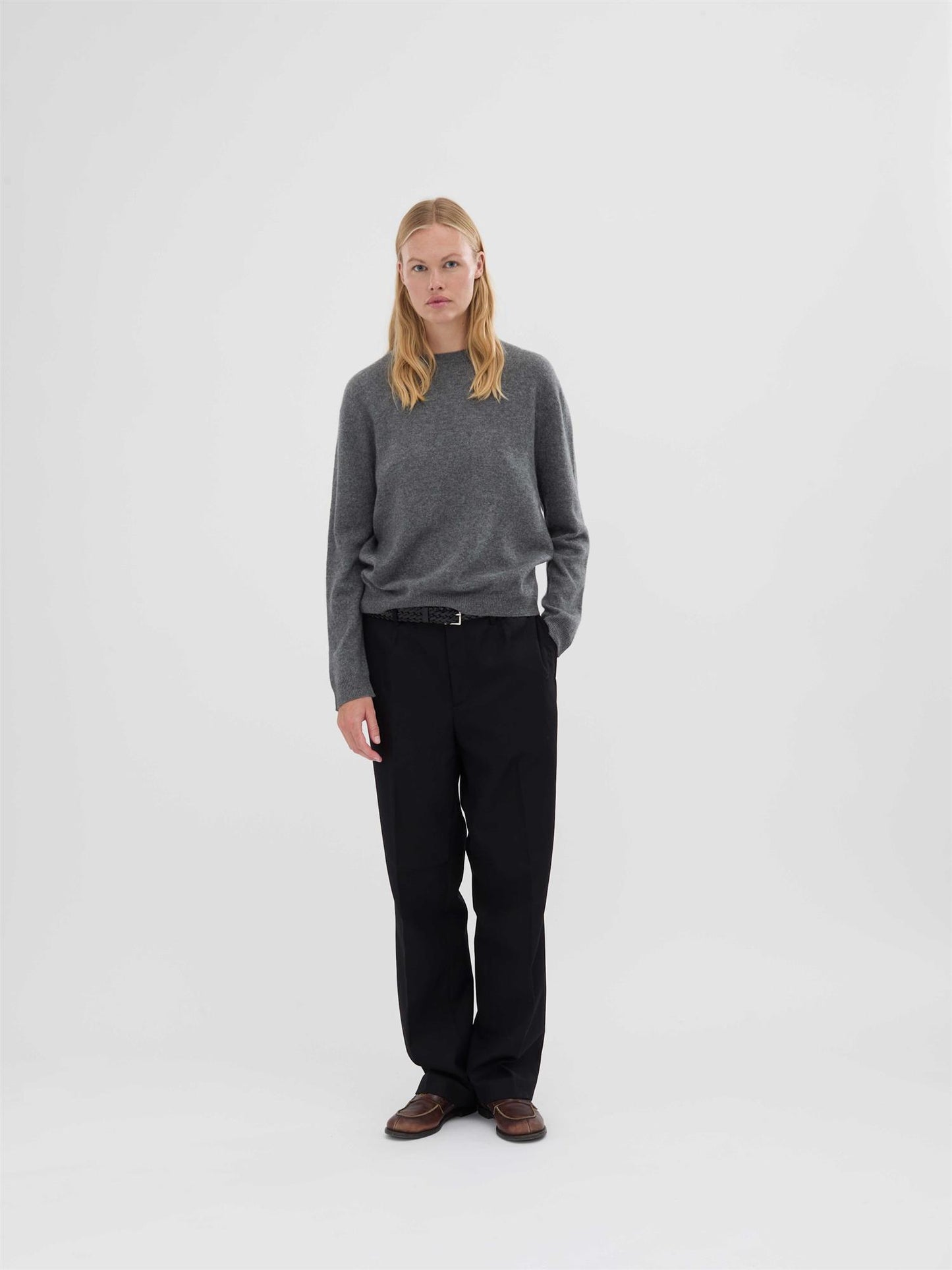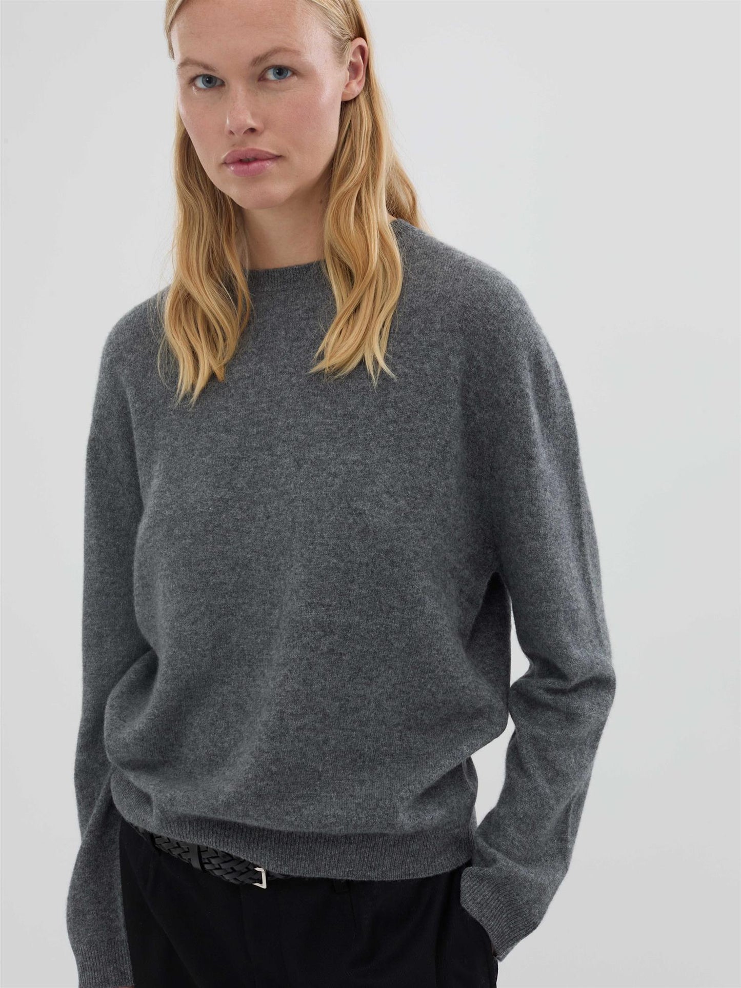 Women's Oversized Roundneck-genser i fargen Heather Grey er strikket i 10-gauge, 100 % Grade A kashmir fra Indre Mongolia, og kombinerer tidløs luksus med uanstrengt komfort. Med en flatterende halsringning og avslappet, boksete silhuett er den perfekt for både lag-på-lag og alene. Nøye strikket for å motstå nupper og bevare fasongen, er dette et varig investeringsplagg i enhver garderobe.