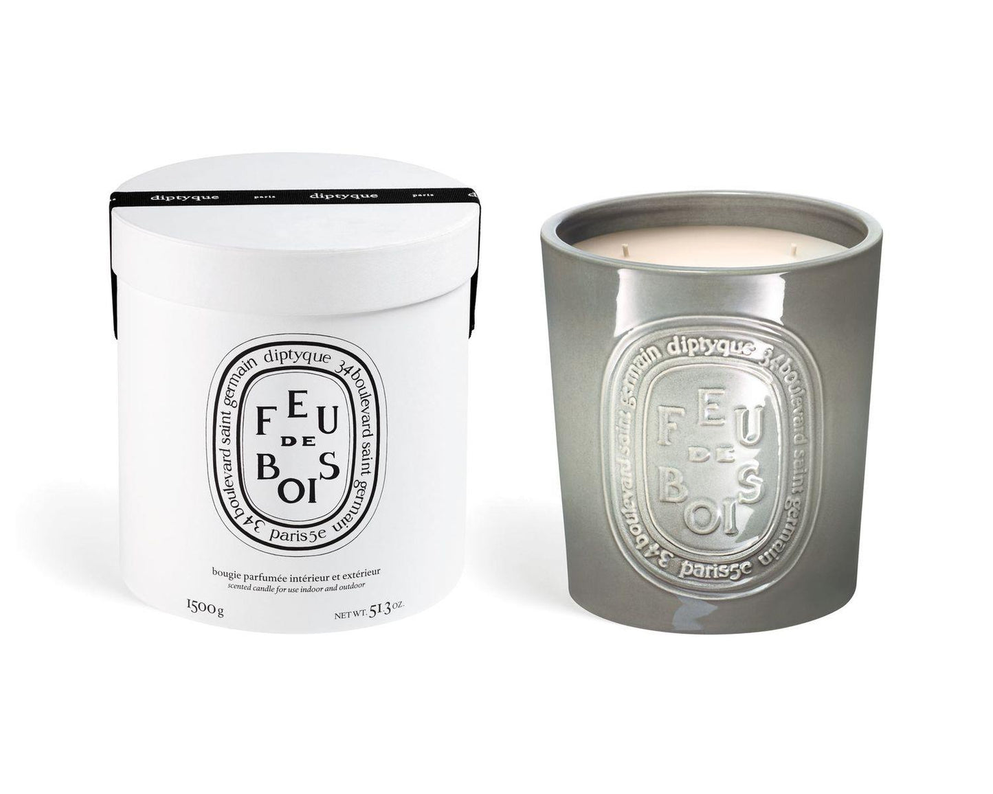 Feu de Bois fra diptyque i 1500 gr er ekstra stort og kan brukes inne i større rom og ute. De er håndlaget hos det berømte pottemakeriet Virebent Pottery i Sør-Frankrike.