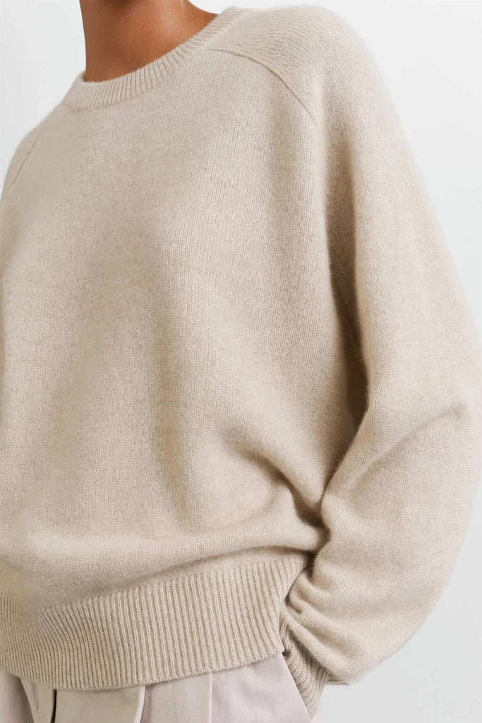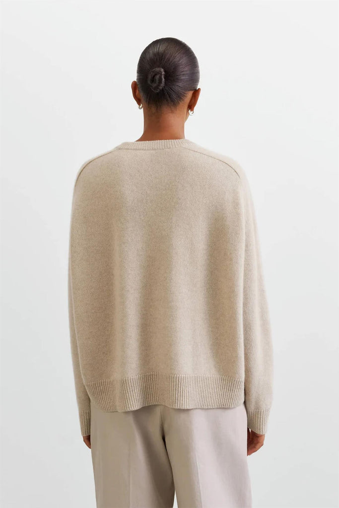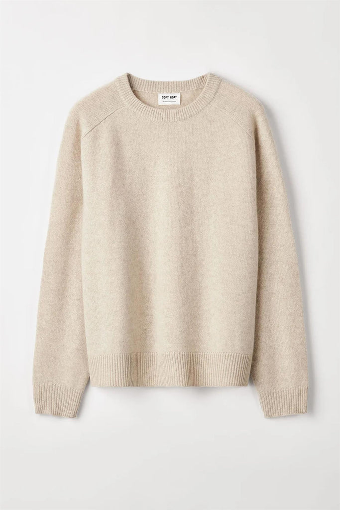 Oversized genser med rund hals fra Soft Goat. Den har en boxy og vid passfasong, lave skuldre og vide ermer. Styles enkelt i hverdagen til jeans, bukser og skjørt.